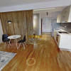 Studioul este open space, dispune de canapea si pat, bucatarie mobilata si utilata si iesire la balcon.