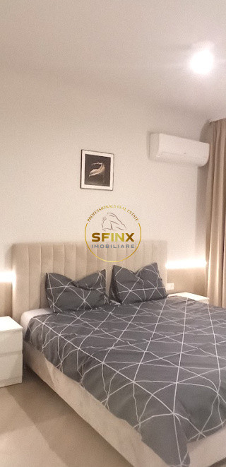 Apartamentul este semidecomandat, format din living cu bucătărie deschisă, dormitor, baie și balcon. Este mobilat și utilat modern, beneficiază de loc de parcare în subteran (opțional, 80 euro/lună). Încălzirea este asigurată de centrală proprie cu gaz și răcirea de două aparate de aer condiționat.