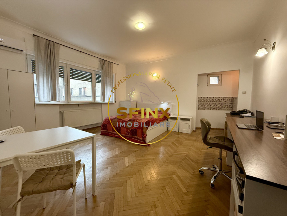 Va propunem spre inchiriere o garsoniera situata ultracentral pe Bulevardul Lascar Catargiu, la etajul 4 al unui imobil de 6 etaje.