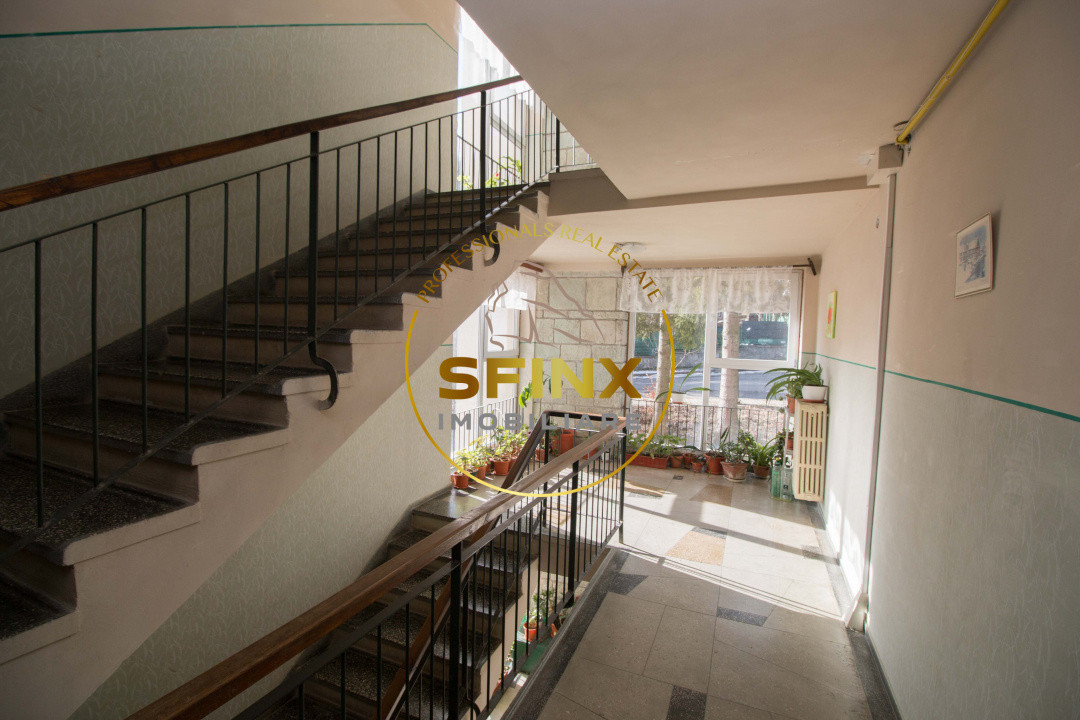 Garsoniera se afla intr-un bloc P+3+M cu o singura scara si e situata ultracentral, in spatele Primariei, la aproximativ 250 m de gara. Blocul, executie 1965, este de constructie speciala (regim militar, foarte curat si bine intretinut) avand peretii exteriori grosi de cel putin 50 cm, asigurand o izolatie termica de exceptie si un consum minim de gaze consumate pe perioada cand nu e locuita, chiar si in timpul iernii.