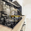 bucătărie extinsă prin integrarea balconului, rezultând un spațiu generos și luminos, ideal pentru gătit și relaxare.
