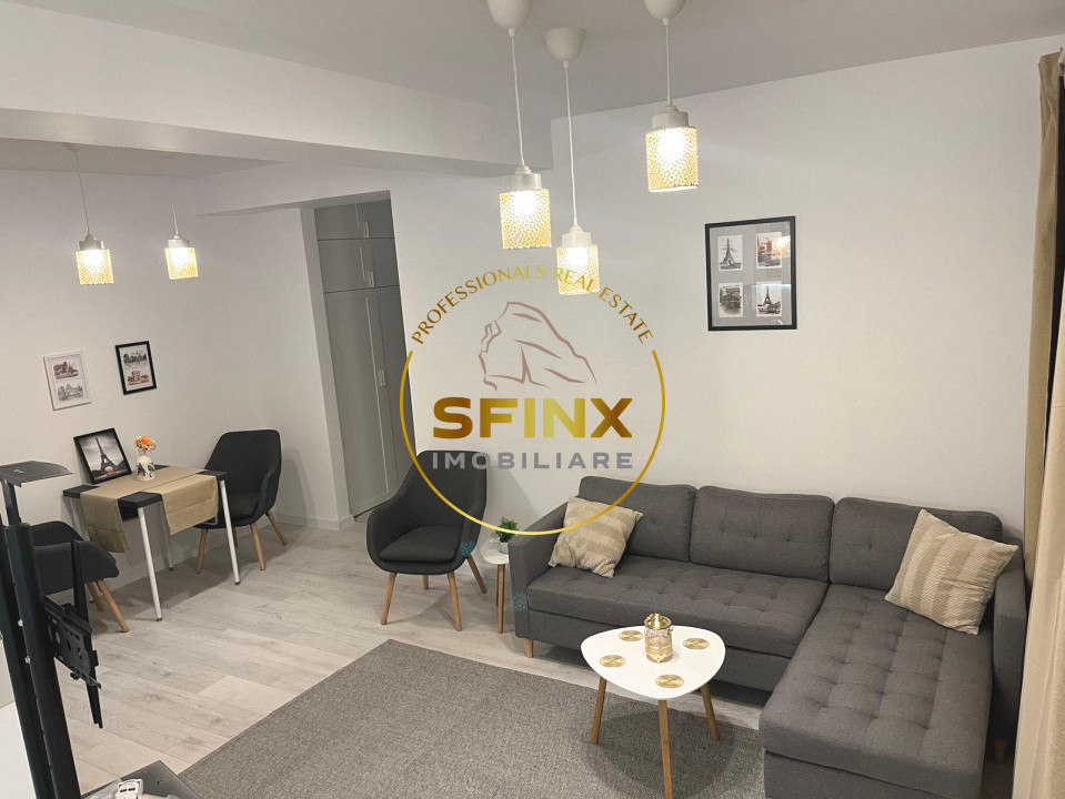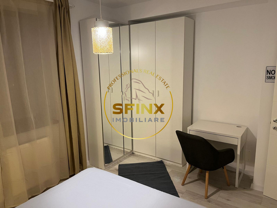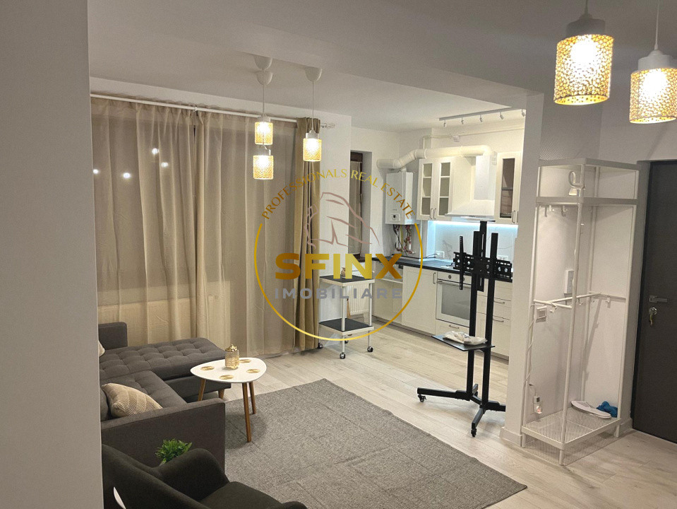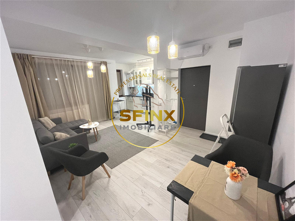 Apartamentul este semidecomandat, cu bucătărie deschisă, living spațios, dormitor, baie cu cadă și balcon. Este complet mobilat și utilat, inclusiv cu mașină de spălat vase, are încălzire cu centrală proprie și aer condiționat, și este liber, așteptându-și viitorii locatari.