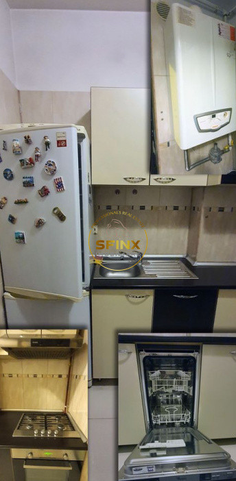Bucataria este dotata cu electrocasnice moderne: frigider, plita pe gaz, cuptor electric, masina de spalat vase si masina de spalat rufe. In apartament exista TV si conexiune la internet. Iluminatul este realizat cu corpuri moderne, iar imobilul beneficiaza de izolatie termica exterioara.