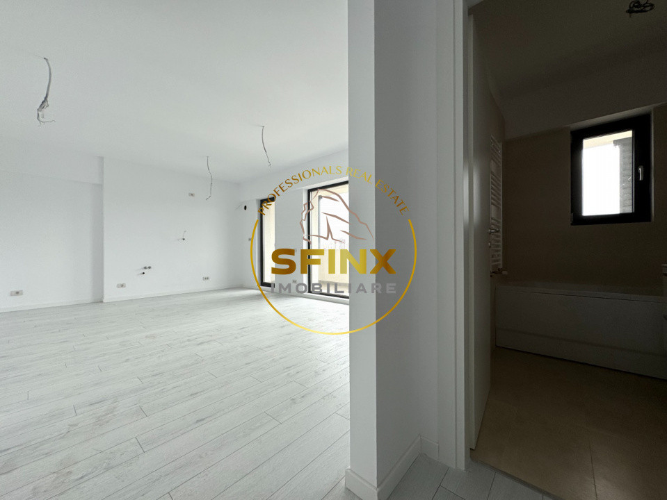 Apartamentul este amplasat la etajul 3 al unui imobil nou (constructie 2024). Spatiul locuibil (48mp) se compune din living cu bucatarie deschisa, dormitor, baie cu cada, hol, la care se adauga terasa generoasa (19mp).