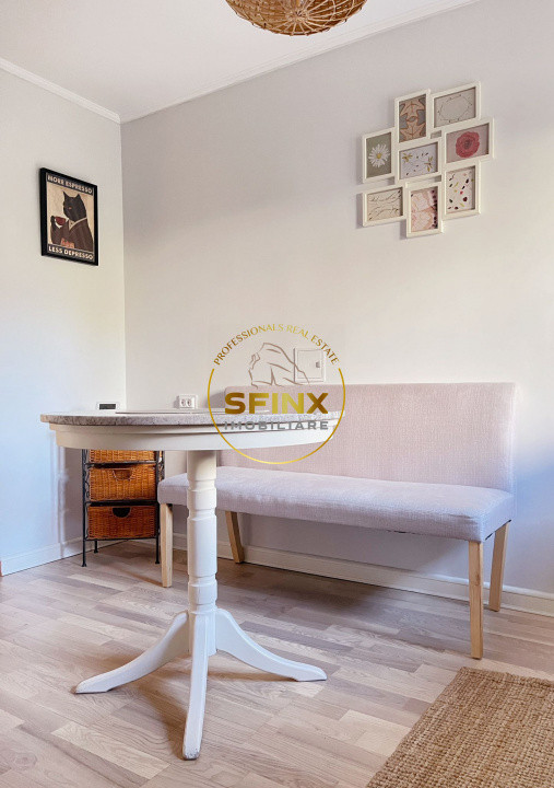 Este proaspat zugravit, mobilat modern, dotat cu electrocasnice, dispune de centrală proprie pe gaz și aer condiționat. Se vinde mobilat si utilat.