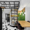 -zona de bar (intre bucatarie si dinning)-structura metalica si blat tip masa/bar cu depozitare, 4 scaune;