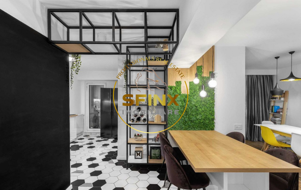 Apartamentul se inchiriaza pe termen lung prima oara, dupa ce a locuit proprietara in el. Este complet mobilat și utilat (mobila a fost realizata la comanda) si are următoarele dotări: