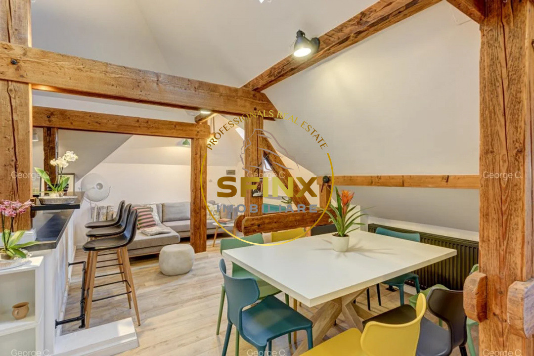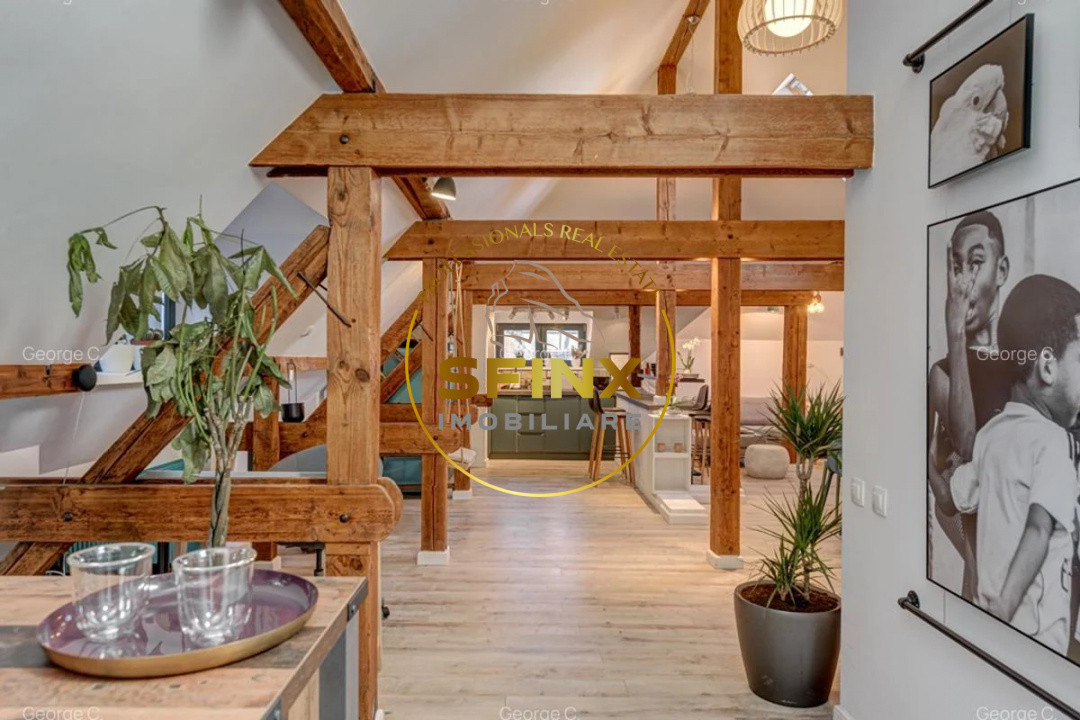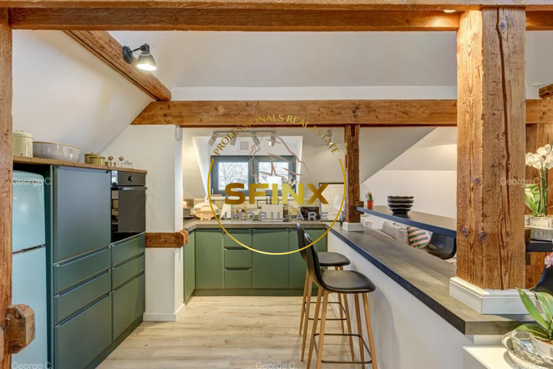 Mobilat complet, finisaje premium, grinzi din lemn aparente