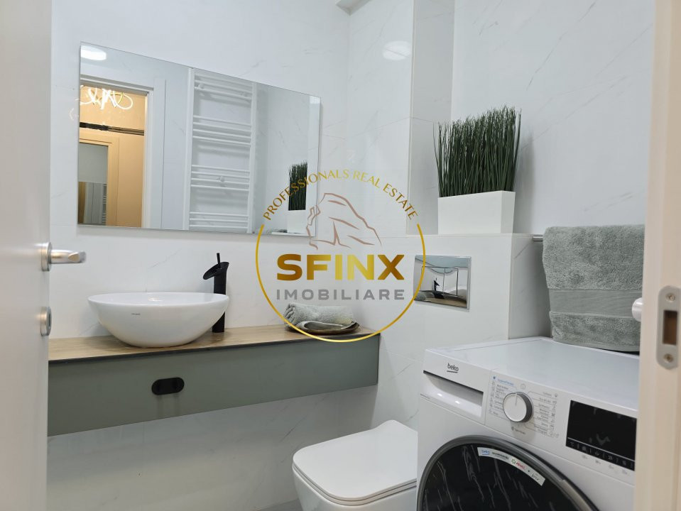 Apartamentul dispune de două băi și două balcoane, iar dormitorul secundar poate fi amenajat, la cerere, ca dormitor sau birou.