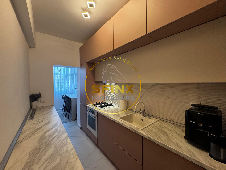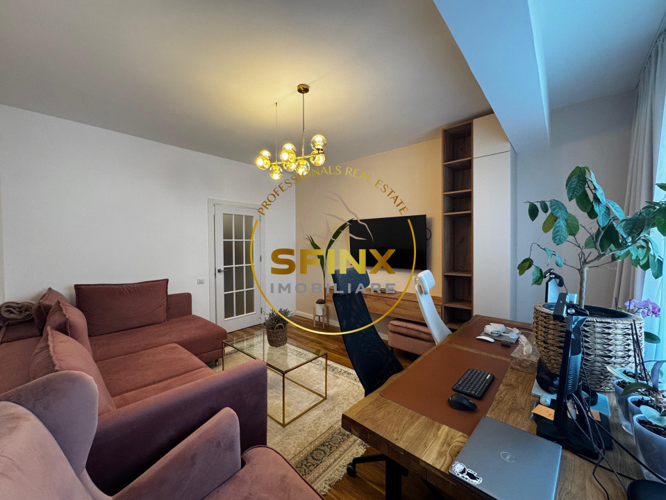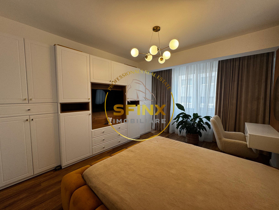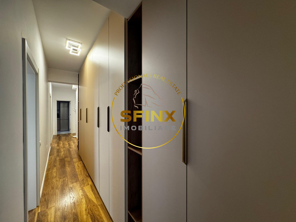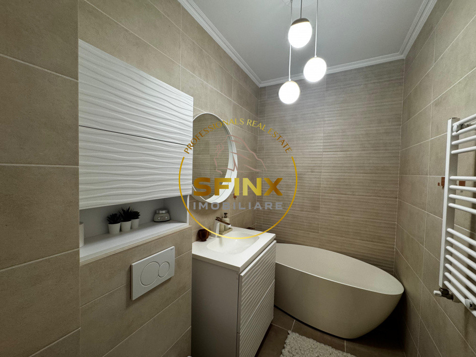 Apartamentul beneficiaza de aer conditionat, centrala proprie pe gaz, multiple spatii de depozitare si o baie eleganta dotata cu cada freestanding, oferind un nivel ridicat de confort.