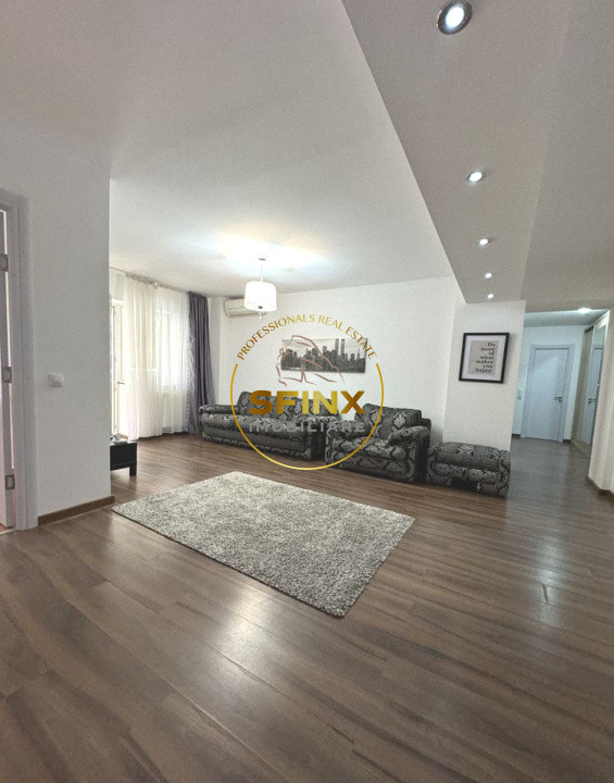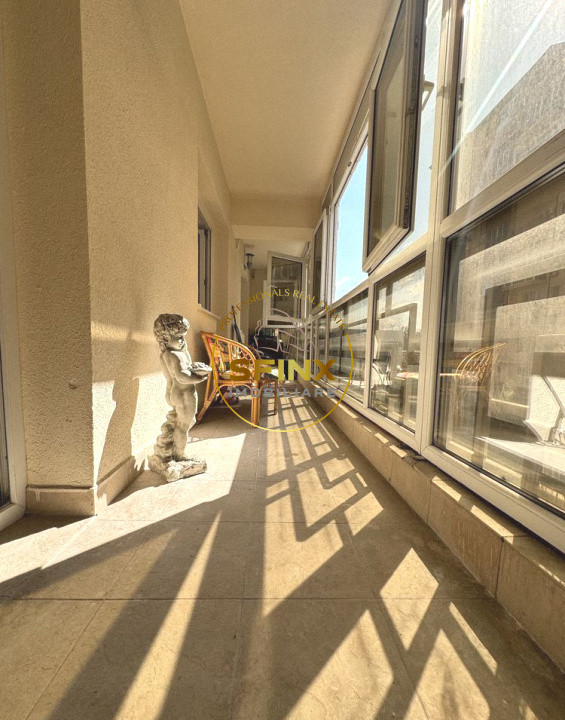 Apartamentul este format din hol, living, bucatarie inchisa, doua dormitoare, doua bai, o camera dressing foarte spatioasa si un balcon generos de 14 mp, cu iesire din fiecare camera, inchis cu geamuri termopan.