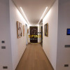 The apartment has 5 rooms, with a usable area of 241 sqm, to which are added 84 sqm terraces and 2 parking spaces in the building's basement. There are 4 bedrooms, each with its own bathroom, plus a guest bathroom at the entrance.