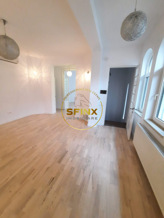 Vilă interbelică restaurată, disponibilă pentru închiriere în cartierul Dorobanți Capitale. Proprietatea se remarcă prin eleganța arhitecturii, compartimentarea funcțională și poziționarea excelentă – disponibilă pentru închiriere exclusiv ca spațiu de birouri.