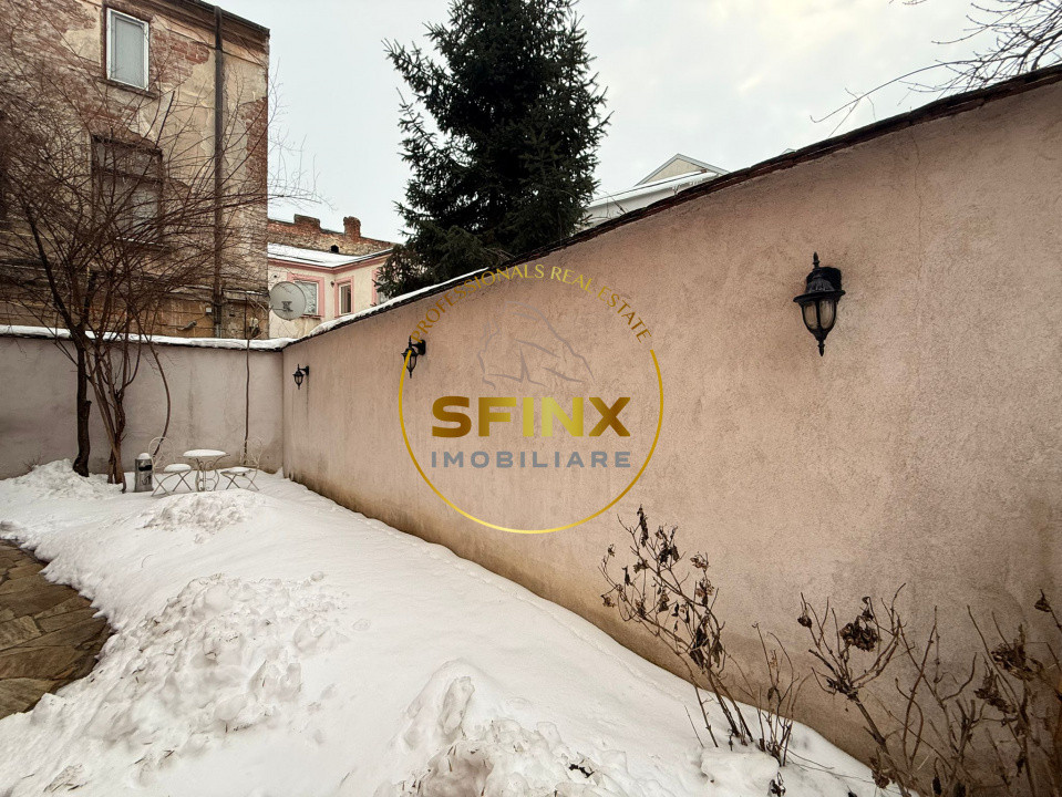 Dispune de curte proprie, unde exista o masuta si scaune pentru baut cafeaua de dimineata.