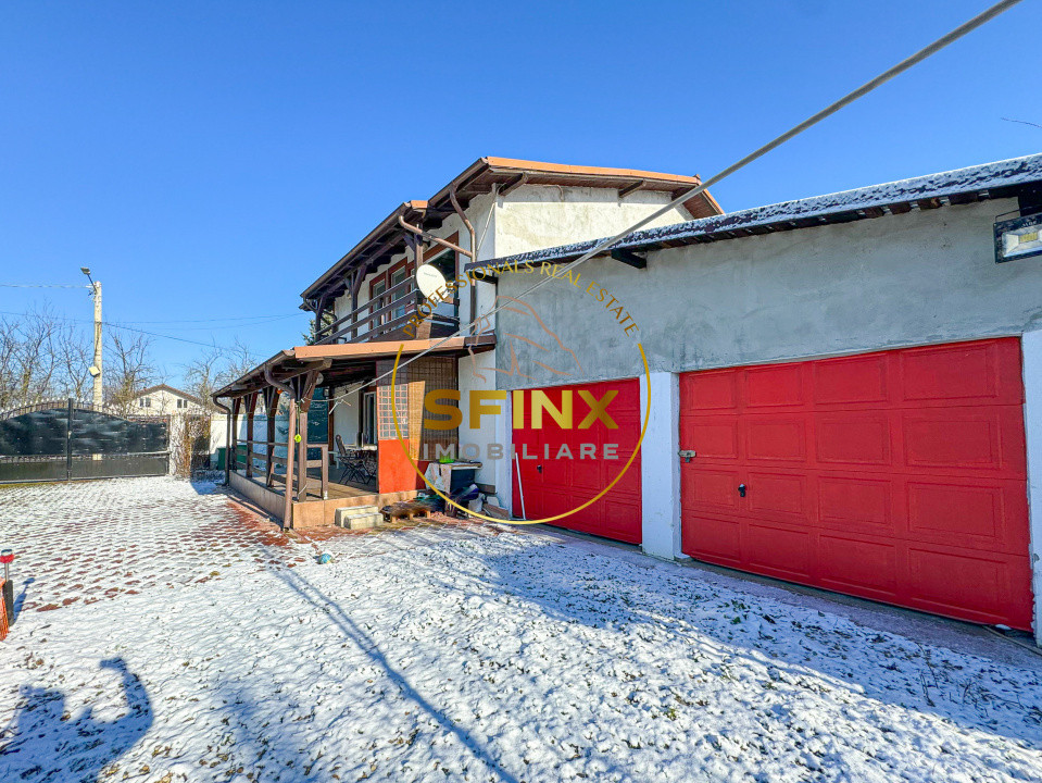 Va prezint spre vanzare o proprietate deosebita care include : un teren de 562mp pe care este pozitionata o vila foarte ingrijita si cocheta cu amprenta de 87 mp, completata de o terasa exterioara pe structura usoara de lemn (aprox. 18,5 mp).Tot ca si structura usoara o fost construit, aditional casei , un garaj unde exista posibilitatea de parcare a 4 autoturisme . Aceeasi structura gazduieste si un put de adincime cu pompa, facilitate aditionala alimentarii cu apa a imobilului de la retea. Racordul la reteaua de apa este independent( caminul este pozitionat in curtea vilei) Iar contoarele de curent si gaze sunt amplasate pe exteriorul gardului ce gazduieste proprietatea. In partea din spate a garajului curtea se prelungeste cu o mica livada de meri- binevenita pe timp de vara. Totodata gardul este completat de poarta automatizata cu acces direct in zona din fata casei si in cea din fata garajelor, zona care este pavata cu dale colorate din argila si incadrata de un gard viu.