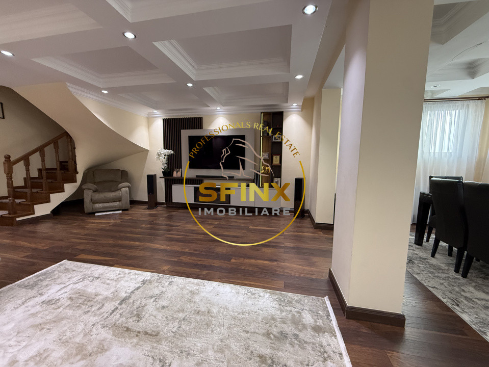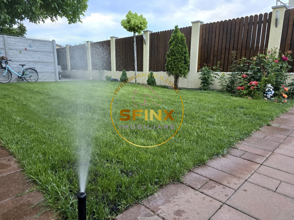 Unul dintre marile avantaje ale acestui imobil este echilibrul dintre suprafetele interioare generoase si amenajarea exterioara extrem de utila. Curtea proprie ofera un cadru placut pentru relaxare si timp petrecut in familie, fiind amenajata cu gazon, sistem automat de aspersoare, pavele, poarta auto si pietonala cu actionare prin telecomanda, precum si doua locuri de parcare.