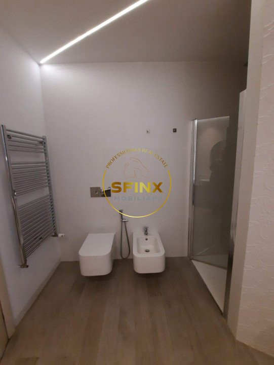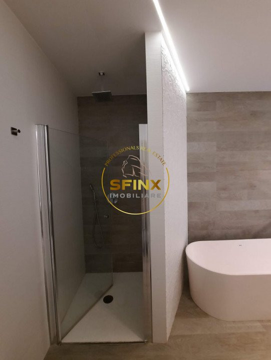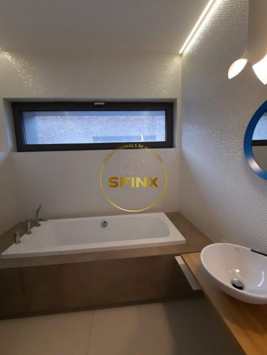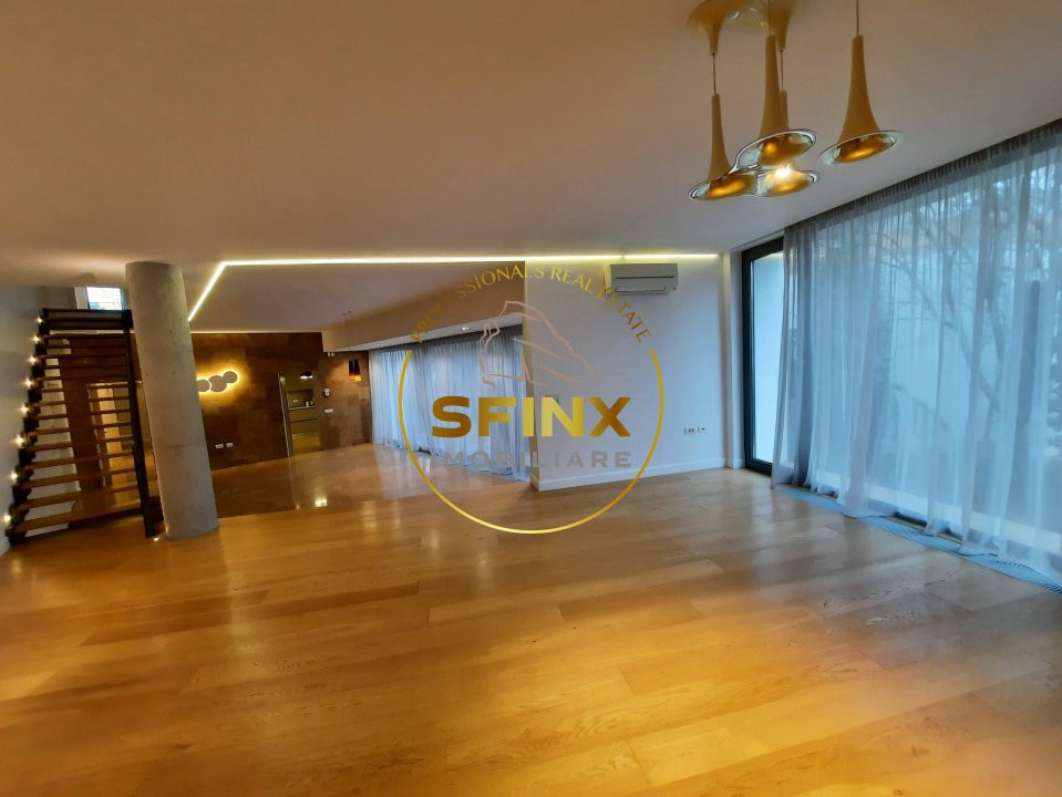 Etaj: 3 dormitoare cu 3 bai; dormitorul matrimonial are dresing si terasa de 24mp; fiecare dormitor are iesire la o terasa
