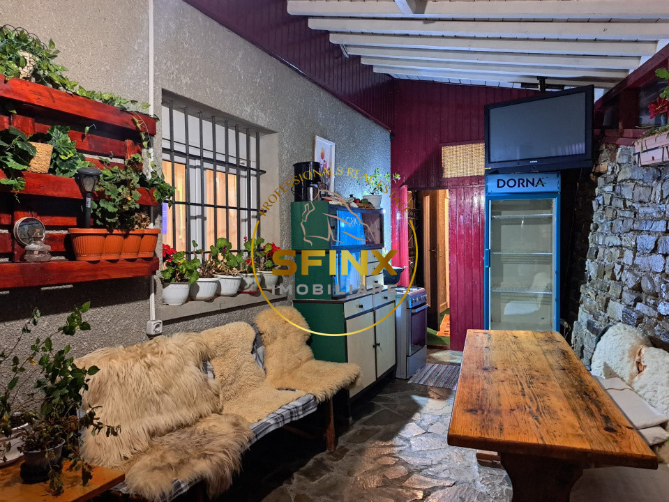 Imobil construit de la zero, solid, cu materiale de calitate (izolatie poliuretanica, piatra, caramida arsa, lemn, geamuri termopan cu jaluzele), ideal pentru exploatare turistica imediata sau dezvoltare ulterioara.