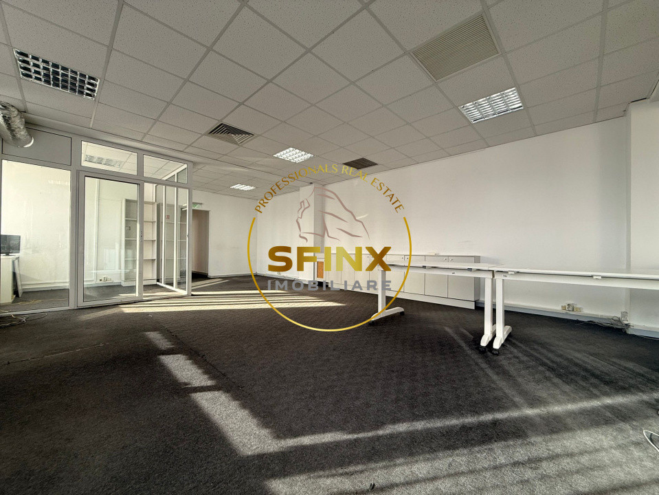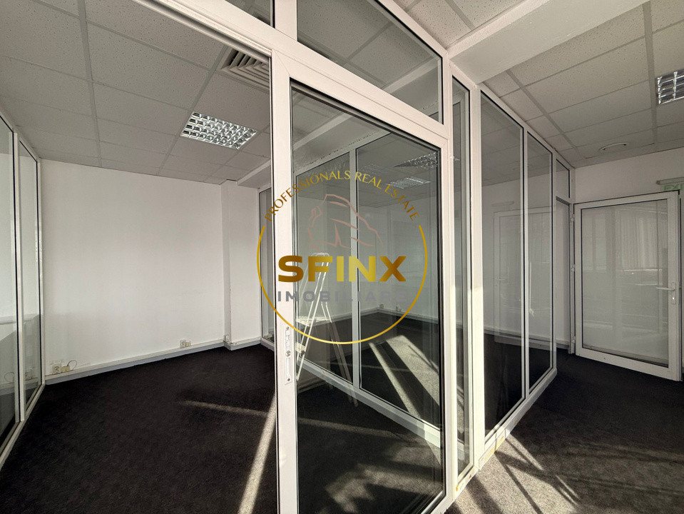 Are o suprafata de 155 de mp si este compartimentat cu partitii de PVC si o camera mare open space.