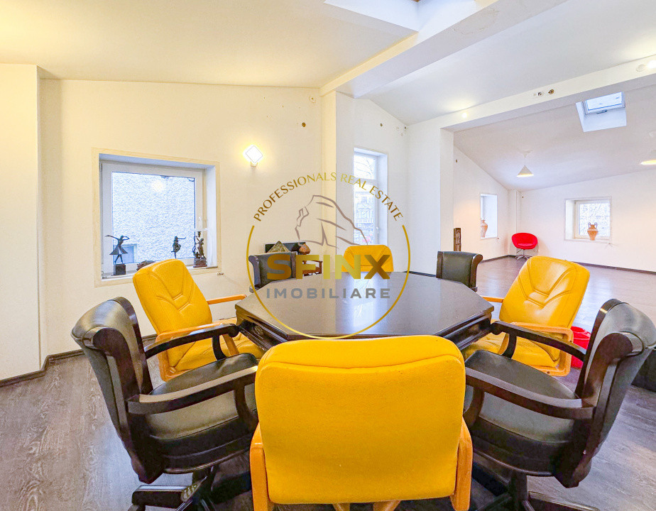 Subsol: 70 mp utili, open space, pereti de caramida aparenta cu tavanul boltit, inaltime 4 m, climatizare, ventilatie, energie electica 220V/380V, apa si canalizare.