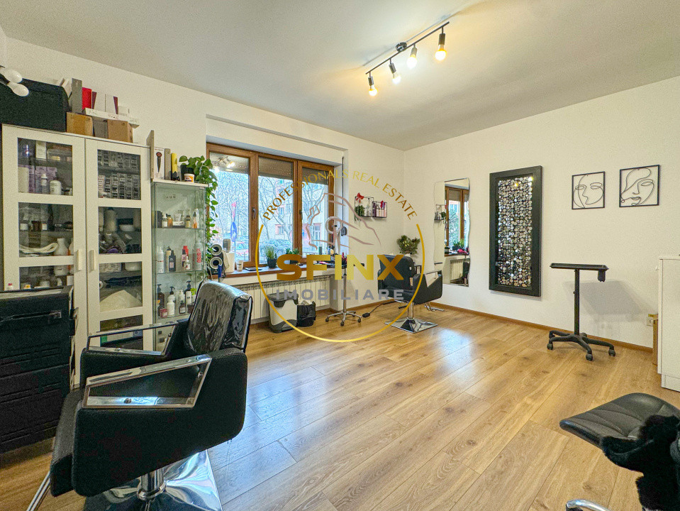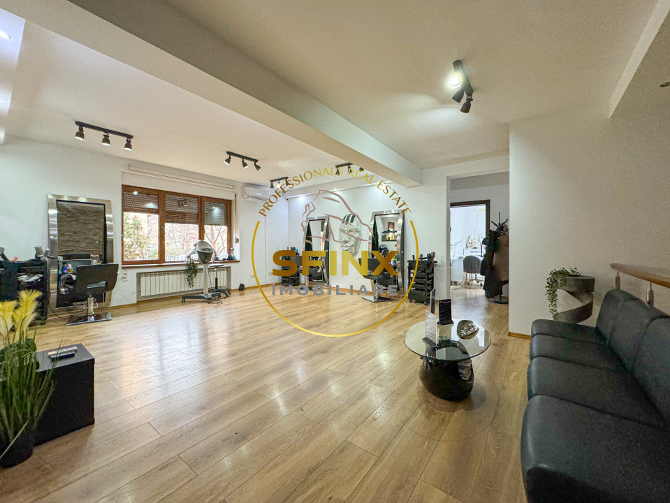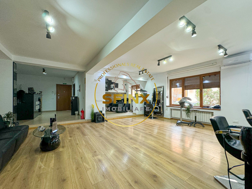 Spatiul este bine compartimentat, este format din 6 incaperi, 3 grupuri sanitare, 1 chicineta, receptie, hol si terasa la parterul blocului.
