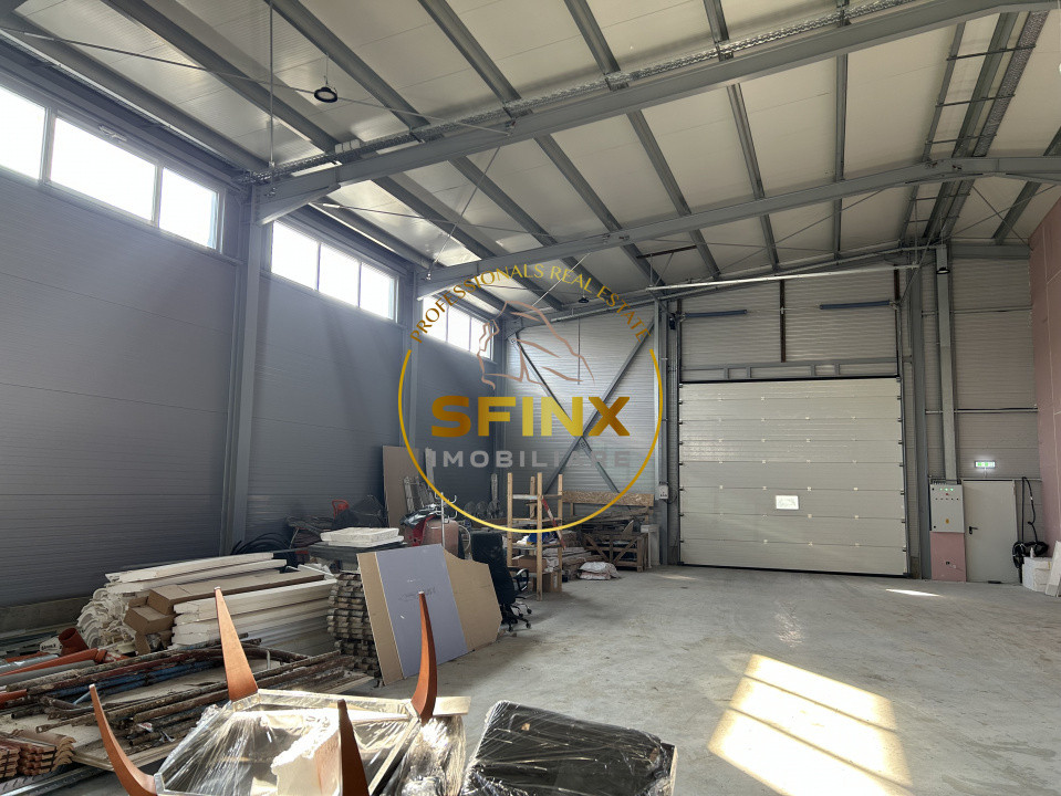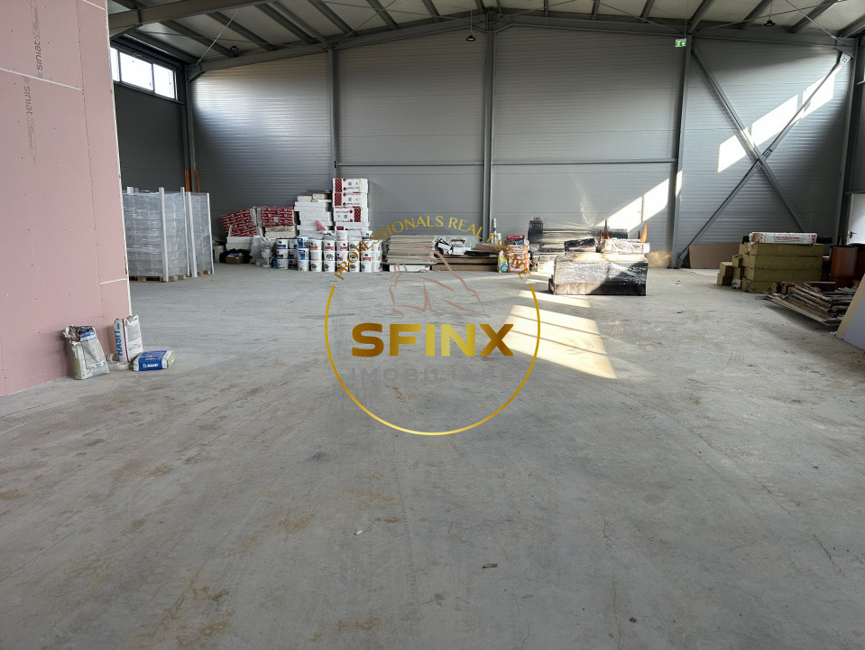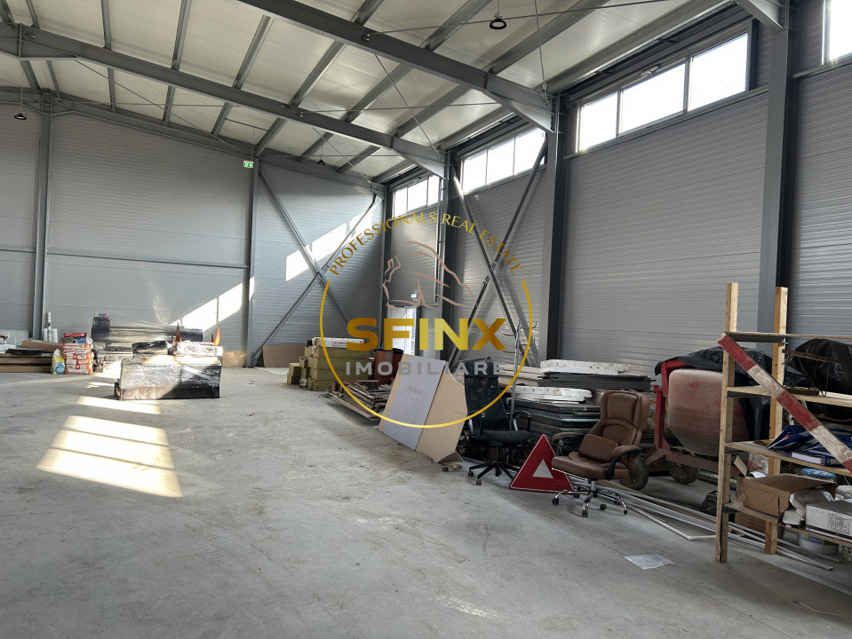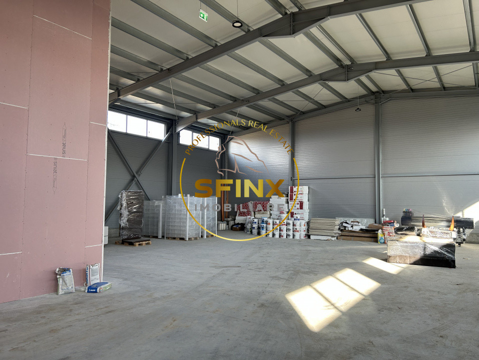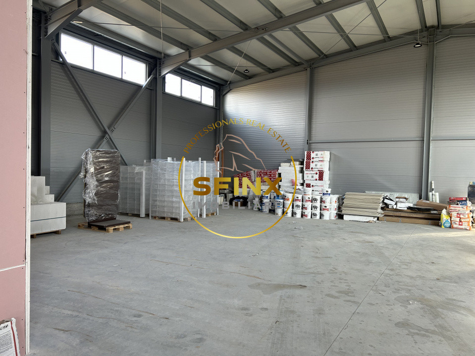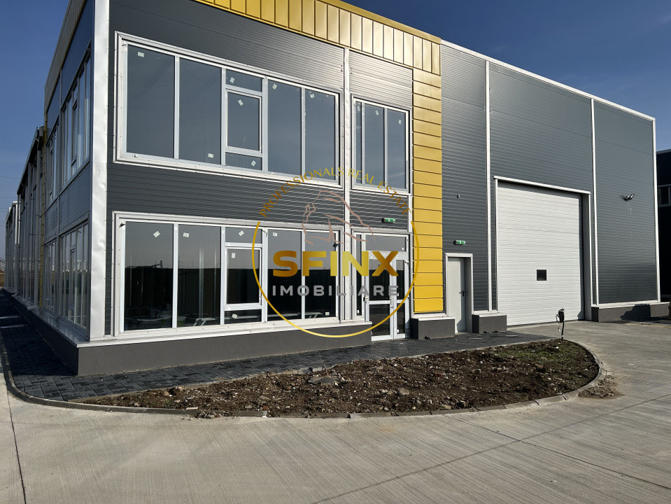 Dotări: pardoseală elicopterizată cuarț, cu sarcina de 5 to/mp, tâmplărie aluminiu, finisaje moderne în zona de birouri, hidranți la exterior și la interior, desfumare, detecție incendiu, 3 uși pentru acces pietonal, ușa secțională cu lățimea de 4.85 m și înălțimea de 4.40 m pentru acces TIR, locuri de parcare și spații verzi.