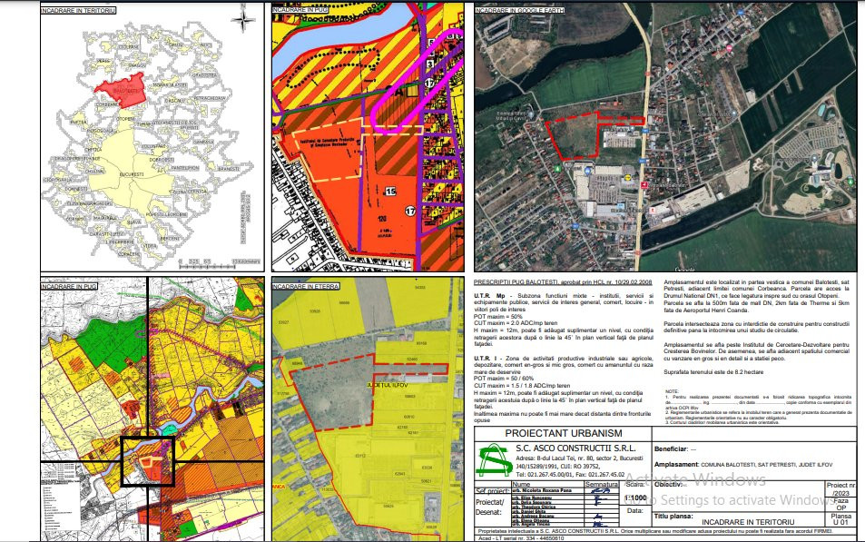 Potrivit reglementarilor din Planul Urbanistic General (PUG) al comunei Balotesti, terenul intravilan se afla in zona cu destinatie mixta, respectiv servicii , comert , birouri , institutii publice si depozitare, dar prin efctuarea si aprobarea unui Plan Urbanistic Zonal(PUZ) poate fi transformat si in teren cu destinatie rezidentiala.