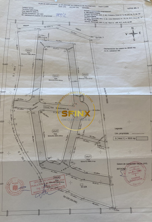 Proprietatea face parte dintr-un teren mai mare (38.500 mp), cu deschidere totală de aproximativ 300 ml la drum. Suprafața oferită spre vânzare este de 11.700 mp.